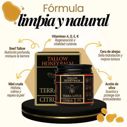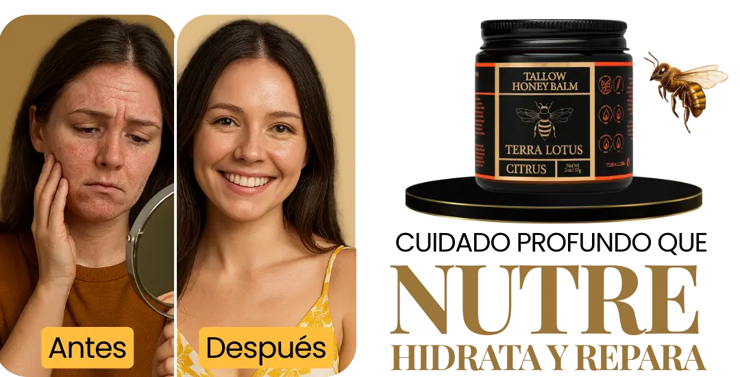 No es tu piel la que falla, son los químicos que solo tapan el problema. Con cada aplicación la debilitan más, dejándola reseca y apagada. Lo que tu piel realmente necesita es nutrición viva: sebo, miel y aceites naturales que devuelven su vitalidad.